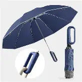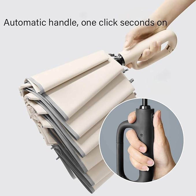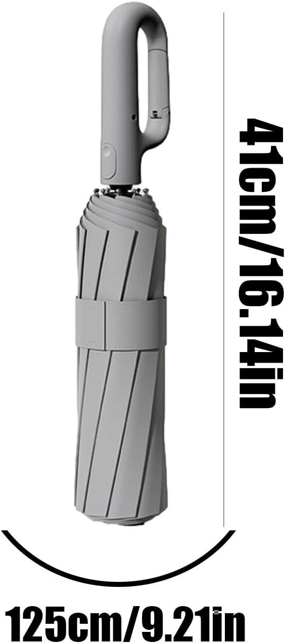 Sombrilla con empuñadura en forma de clip.Mango para colgar en percheros o puertas.Alto: 65 cmDiámetro: 110 cm